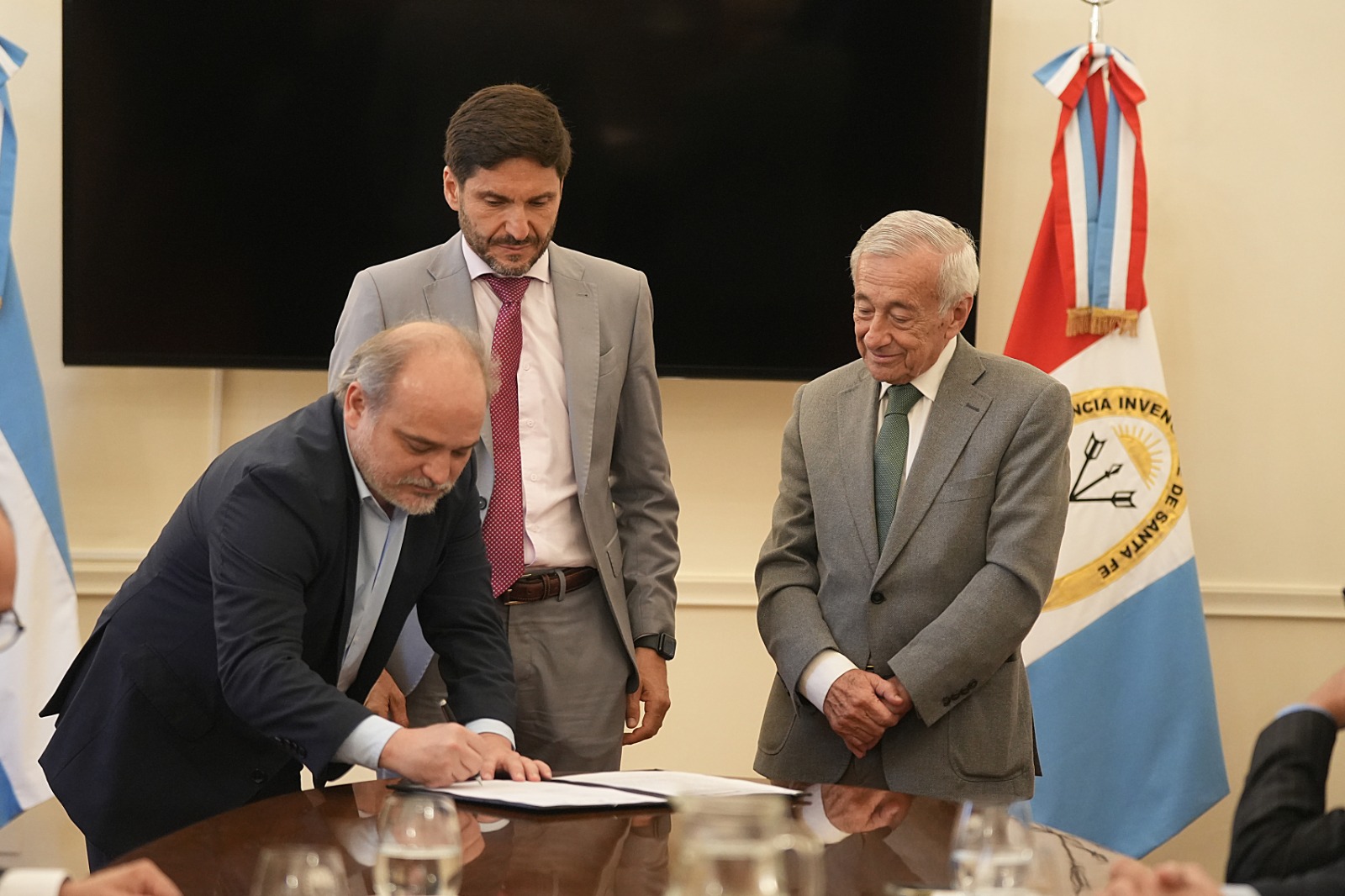 El acuerdo fue firmado esta mañana, por el gobernador Maximiliano Pullaro, el presidente de la Corte Suprema de Justicia, Roberto Héctor Falistocco, y el gerente general de la SRT, Fernando Gabriel Pérez. Participaron por el Poder Judicial los ministros Eduardo Spuler, Rafael Gutiérrez y Rubén Weder.